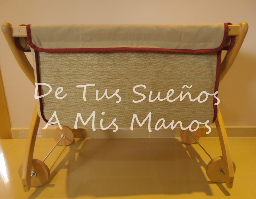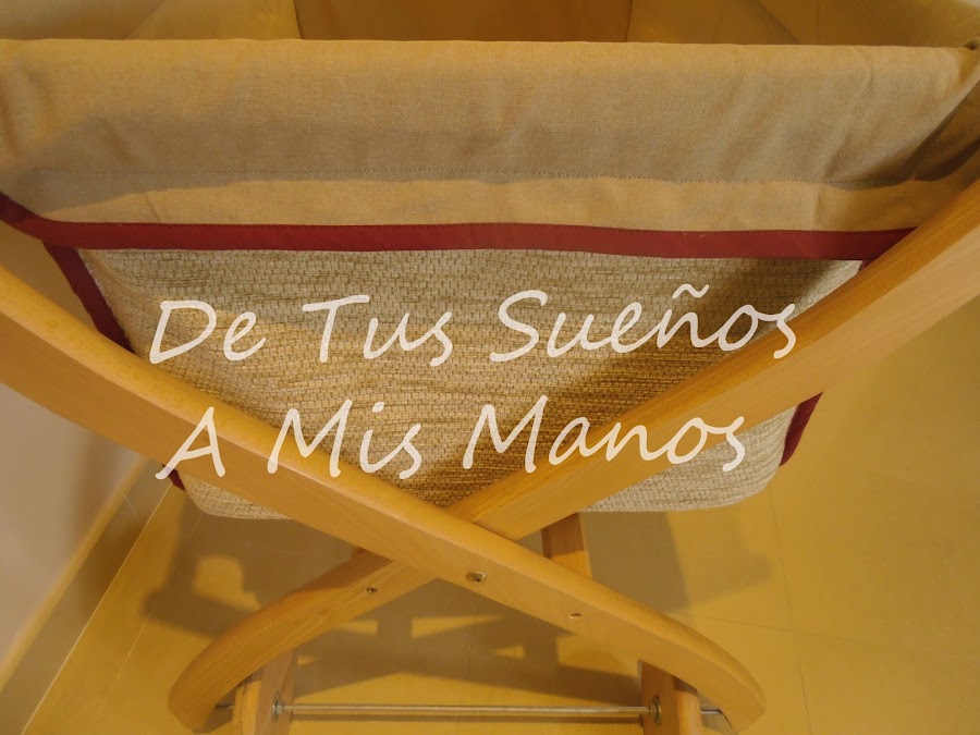 Vestidura de minicuna realizada en tonos marrones y grises.