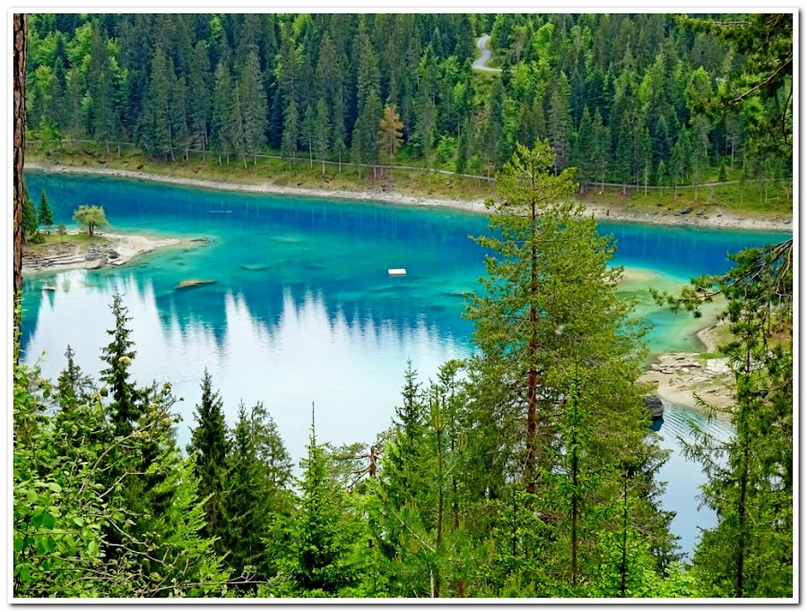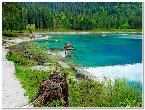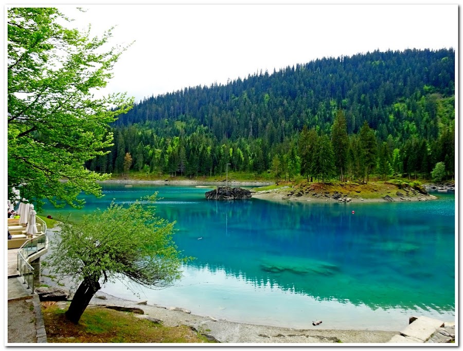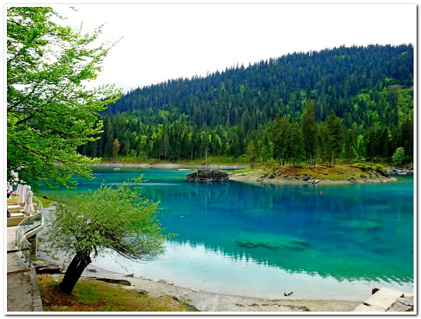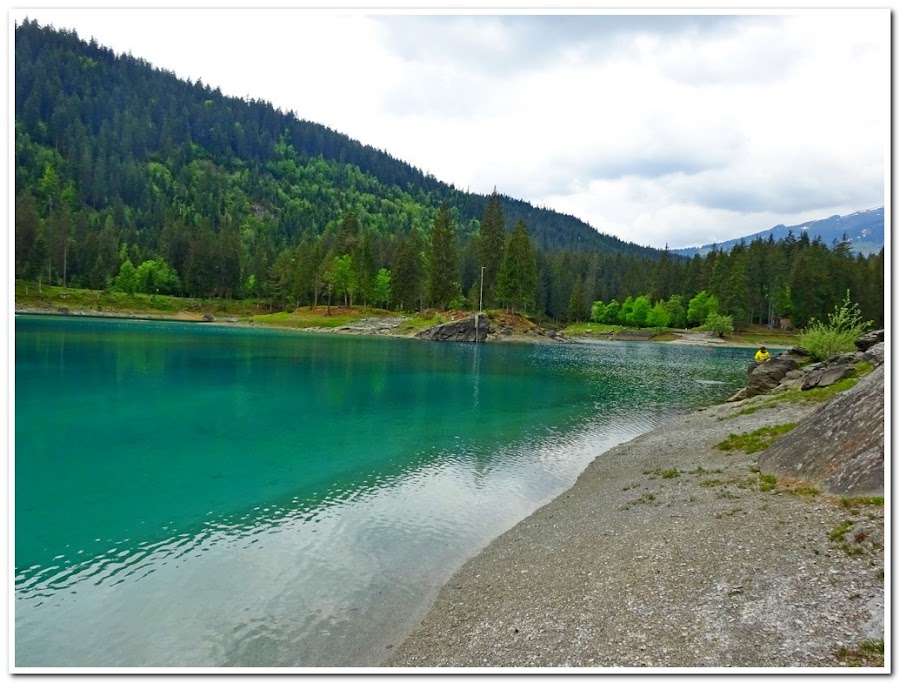 y es como un pedazo de caribe en suiza muy cerca de Films, rodeada de arboles y en plena naturaleza el lago se nutre de agua subterránea y esta, en verano puede alcanzar una temperatura entre 21 y 24ºC, a que es fenomenal?