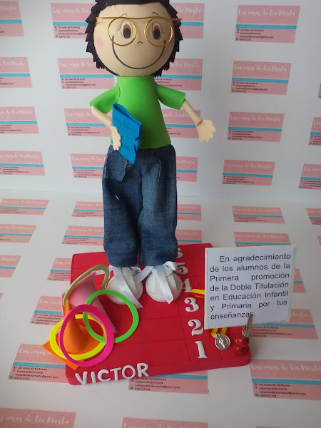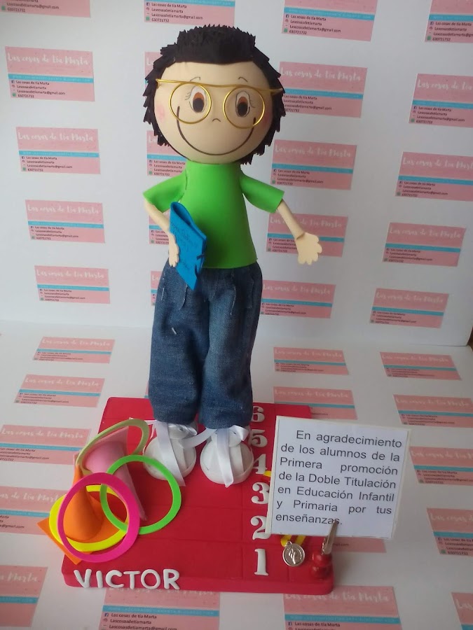 Los alumnos de Víctor han querido regalarle este mini-yo como muestra de agradecimiento en su trayectoria estudiantil.