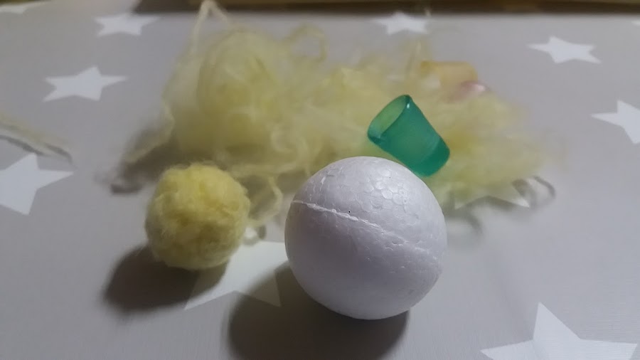 Con este trocito de lana amarilla, hice el pollito pequeño, fijaos que poquita.