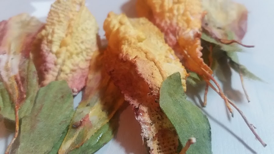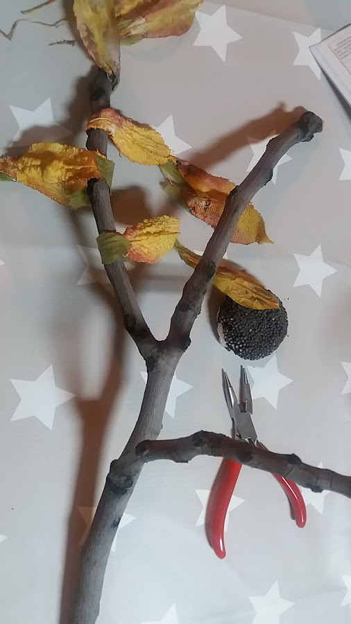 Una vez limpios los fui enroscando con su propio alambre a esta ramita que cogí cuando paseaba con Nilo.