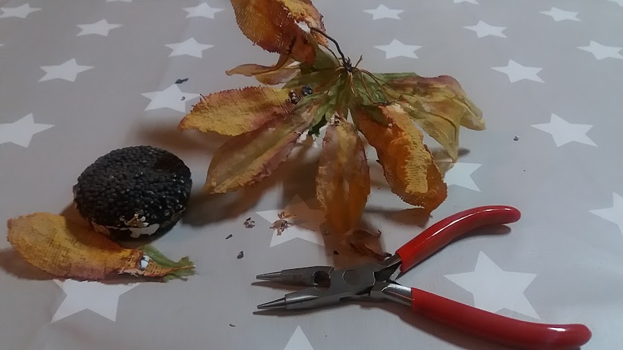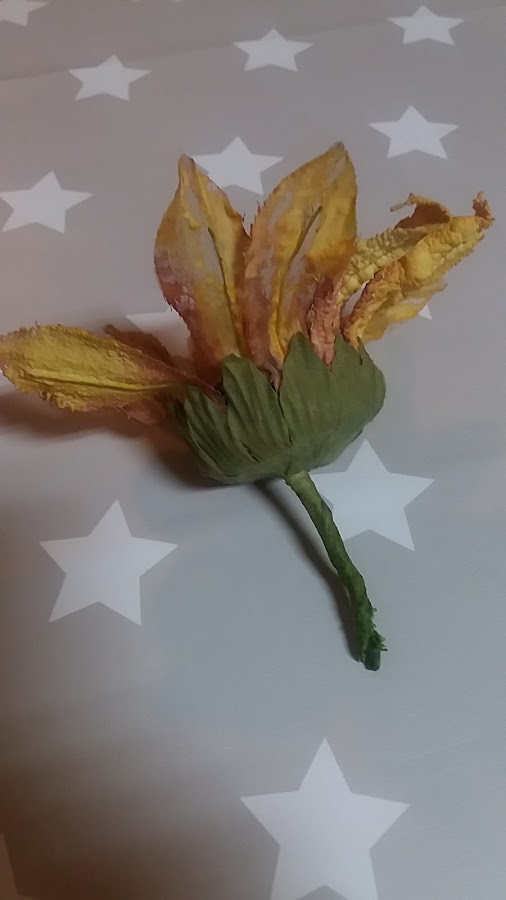 A este girasol, le fui quitando los pétalos, y los limpie de restos de pegamento.