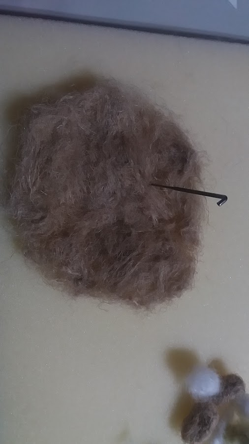 Aquí entenderéis mejor lo que os decía, del cabo grande, separo los otros tres, y una vez separados, voy poco a poco peinan dolos hasta conseguir una textura de algodón.