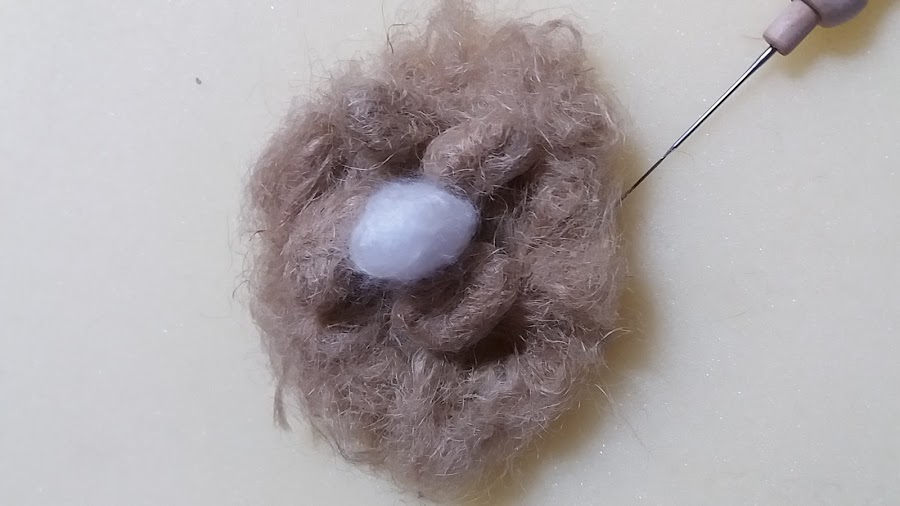 Con la aguja, afieltrada, y encima de una esponja , de esas que usamos para rellenar cojines de las sillas, se va pinchando hasta conseguir la forma que quieres.