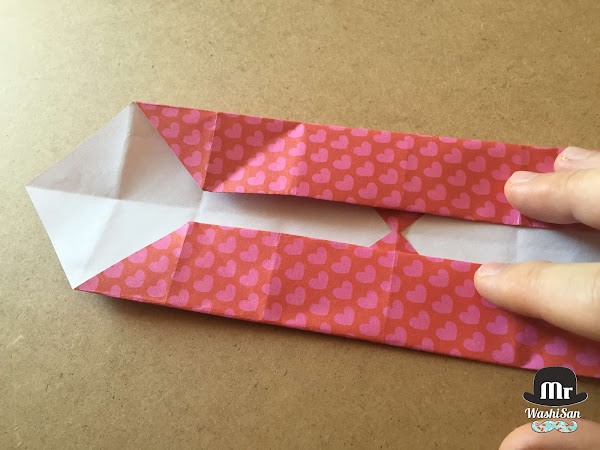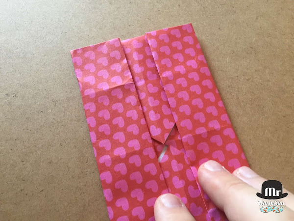 Doblamos ahora un lateral hacia el centro ( el borde ha de doblarse sobre el eje central) y lo mismo co el lateral opuesto.