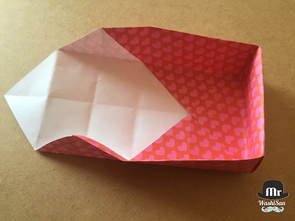 Desdoblamos dos laterales opuestos y los volvemos a plegar sobre los vértices. Y ya tenemos la base de la caja.