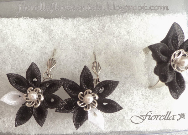 Collar con flor de organza y satín y Pendientes en organza