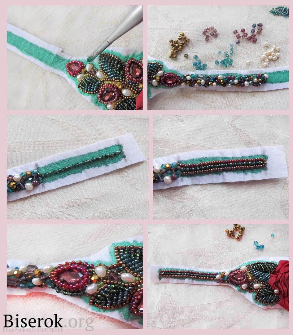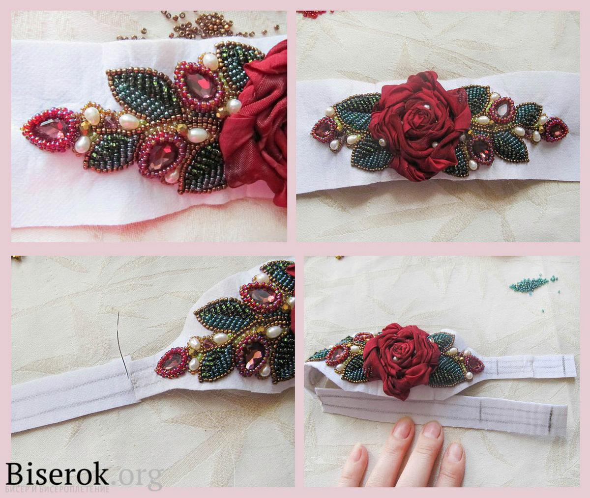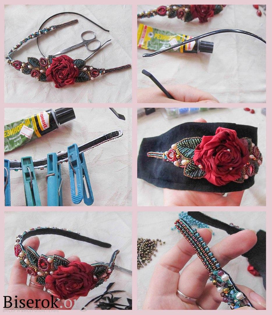 Peguemos con un pegamento instantáneo y muy resistente nuestra preparación bordada a la vincha de cabello.
