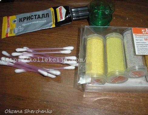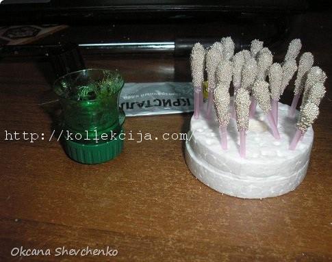El centro de la flor vamos a hacer de los hisopos cubiertos con caviar para la manicura.