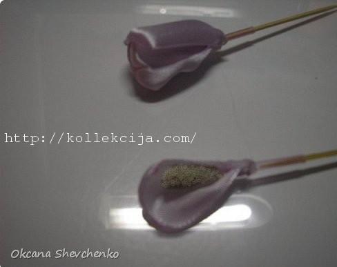 En la parte inferior del pétalo hacemos un pliegue y lo fijamos con el fuego.