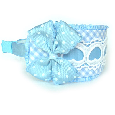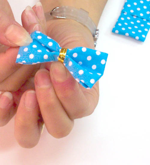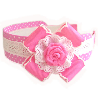 Ahora pega con silicón liquido o cose a mano la diadema de plástico que podrías forrarla con la misma tela que utilizaste Hacer paso a paso un moño ,este sera como decoración para la vincha -diadema