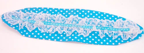 4.De la misma forma coser o pegar el encaje en la otra pieza de tela ,(pero está ira en medio de la tela ).Adornar con flores de tela u otro.