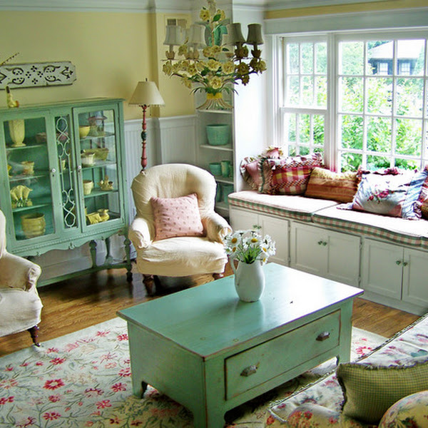 Volvemos con el estilo vintage, hoy, salones. Aún faltan unas pocas habitaciones por decorar, incluido una variante de salón donde también esté incluido el comedor, así que abrid bien los ojos, que hay preciosos cojines, aparadores de colores, mesas elegantes, flores, luz, romaticismo y magia, estoy segura que a muchos de vosotros os encantará.