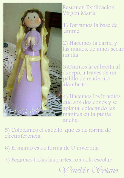 7) El cinto o cinturón de la figura, es una tira, que pegaremos antes del manto. Colocandole esos dos rollitos que cuelgan, dándole movimiento a la caída de las tiras. Pintamos orillitos dorados, decoramos a nuestro gusto, hacemos ojitos y para terminar pasamos una mano de brillo al agua a toda la pieza para protegerla (o algún barniz, según los materiales que estén a su alcance)