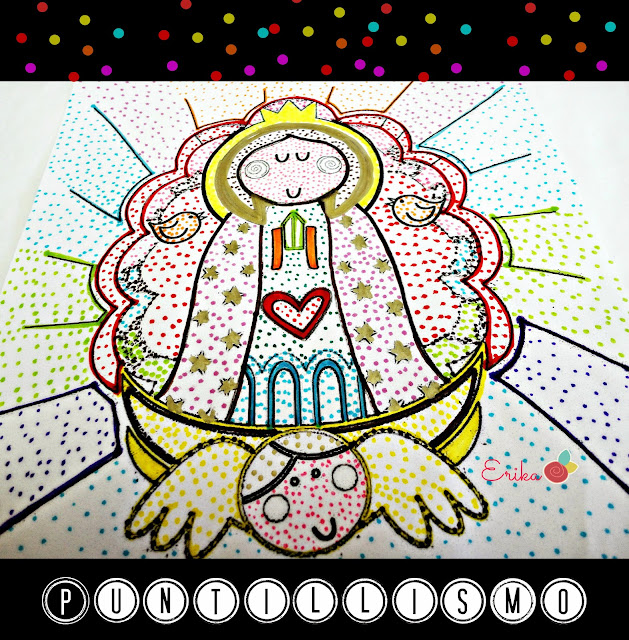 Pintar a la Virgencita plis con la técnica de puntillismo , una manualidad de pintura especial !