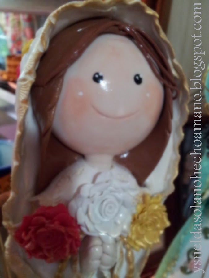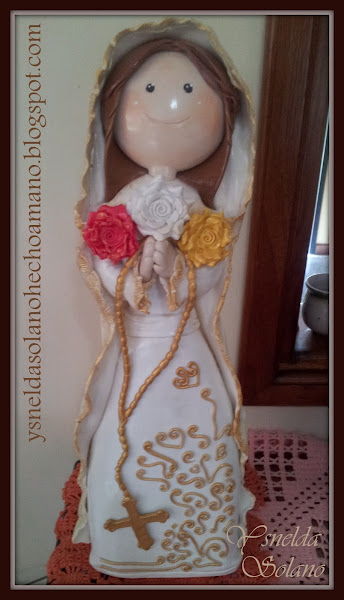 Todo comenzó con uno de esos angelitos que tengo como cliente, que me encargo una virgencita de unos 50 cm de alto, fue un proceso ... digamos largo, pero lo logré. Totalmente agradecida.