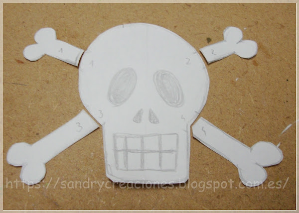 En esta visera tipo sombrero de pirata el complemento estrella es la calavera que haremos de esta forma: