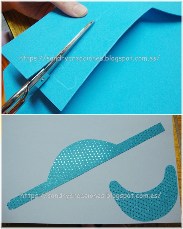 Paso 3. Cortar las piezas de goma eva de la visera. Una vez tenemos marcadas las plantillas, cogemos las tijeras y nos ponemos a cortarlas con cuidado.