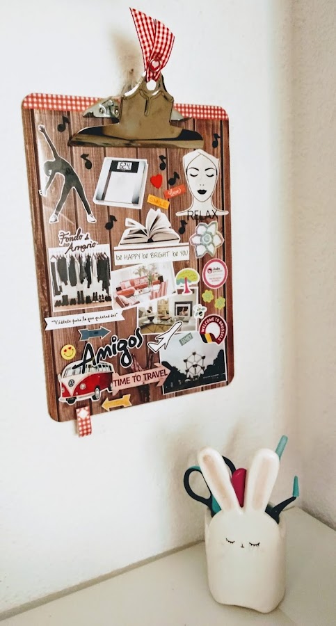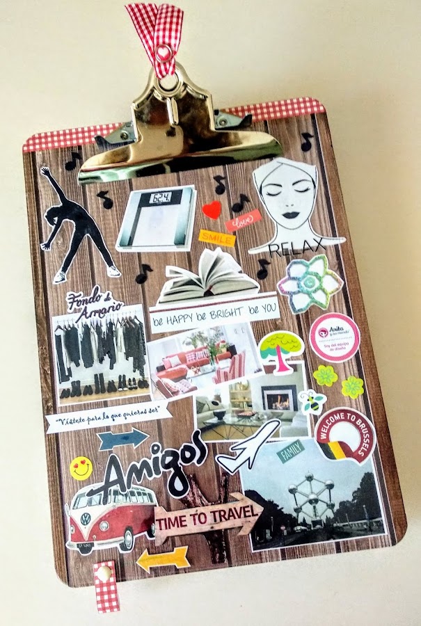 Las imágenes, frases..., de todo aquello que quieres para el nuevo año, puedes pegarlas sobre un simple tablero, cartón... o como he hecho yo sobre un chipboard de esos que puedes encontrar en papelerías.