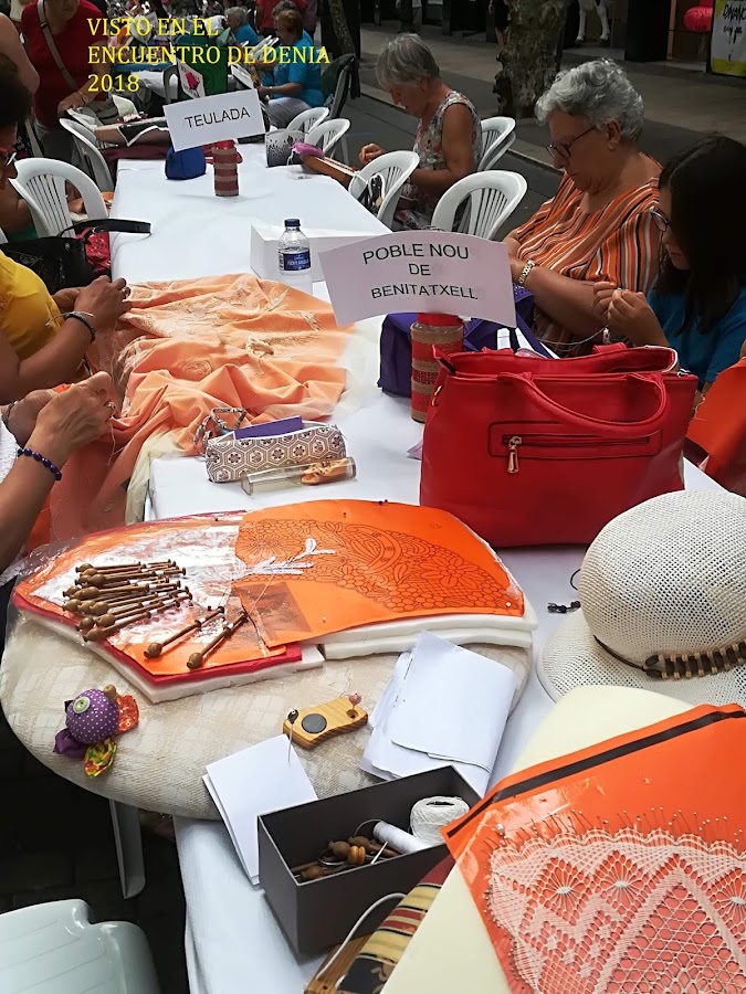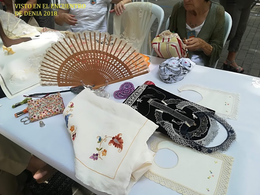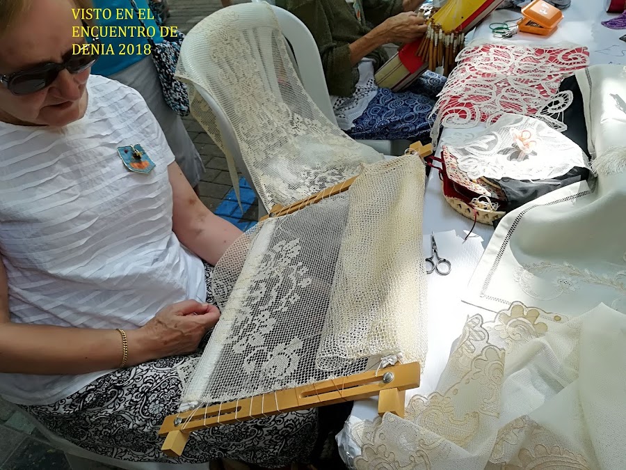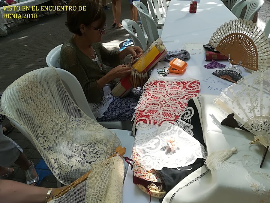 Escasos puestos de venta, no todos de material de encaje de bolillos. El motivo, pues que el Ayuntamiento de Denia es uno de los pocos que piden "papeles", es decir Certificado de estar al corriente en la Seguridad Social, Certificado de estar al corriente en Hacienda, supongo que Seguro de Responsabilidad Civil y alguna cosa mas. Y algunos puestos no los tienen y otros no llegaron a tiempo de presentarlos así que...