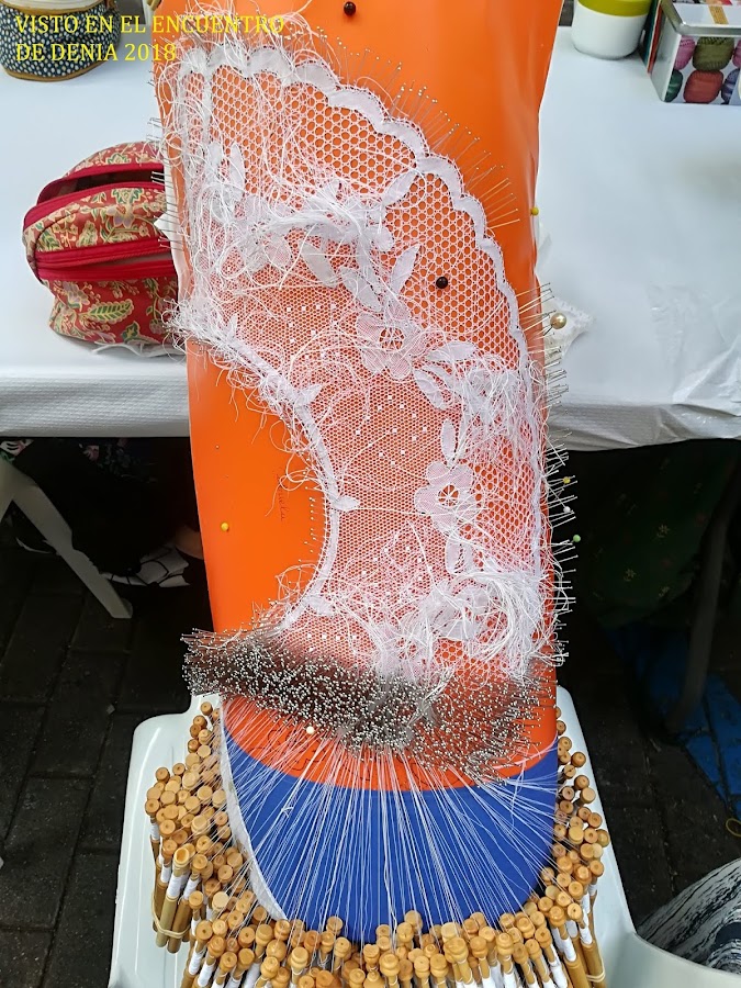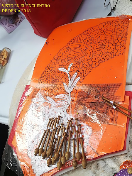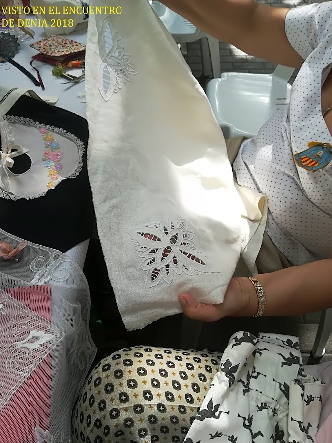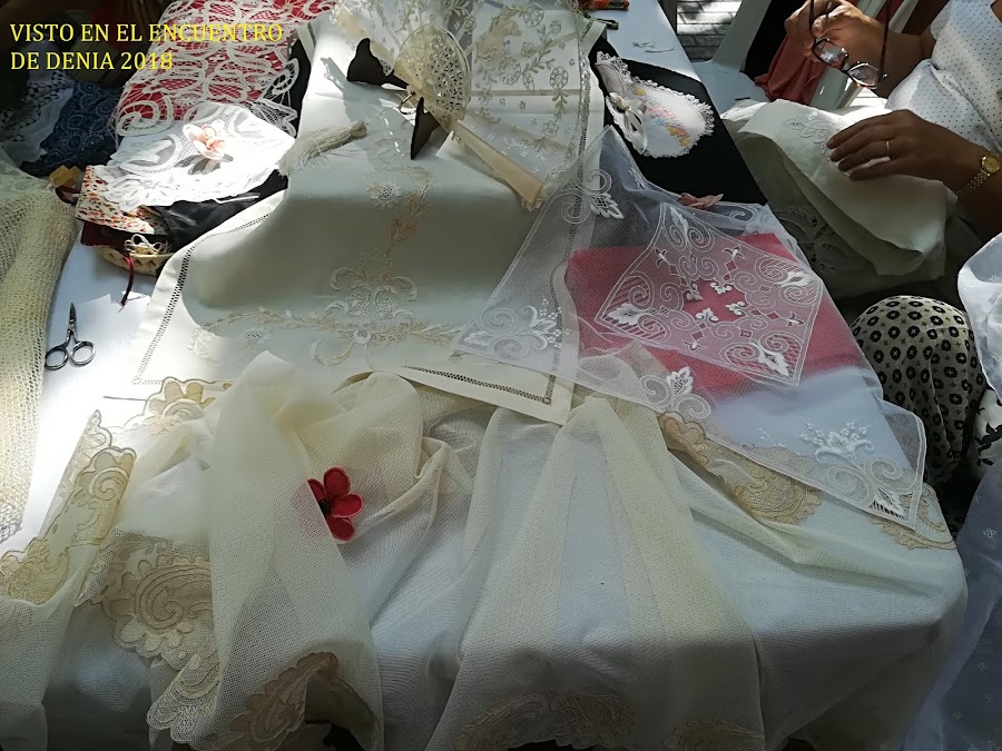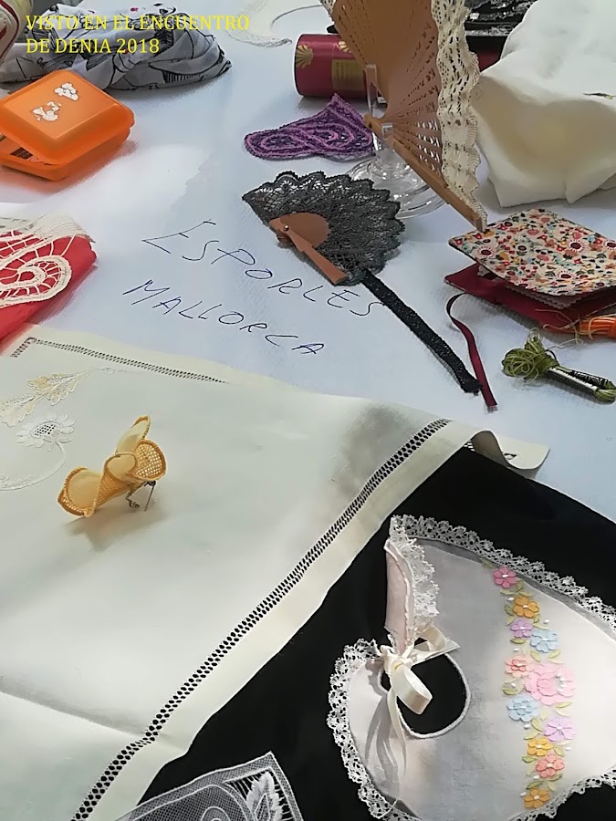 Entre las pocas personas que habían sentadas en las mesas he conocido a unas señoras de Esporles (Mallorca) que estaba haciendo bordado Richelieu, bordado de malla y bordado en tul. Tenían en la mesa unos trabajos divinos.