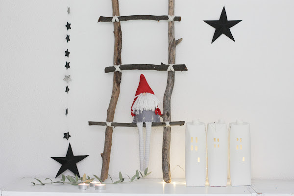 6. Escalera rústica: Las escaleras están de moda, pero si además tiene un aire rústico e irregular, el éxito está garantizado. Vete de excursión y coge algunos palos, dos largos y tres más cortos. Átalos con cuerda o cordel y ya tienes listo un soporte estupendo para colocar duendes, luces o lo que quieras.