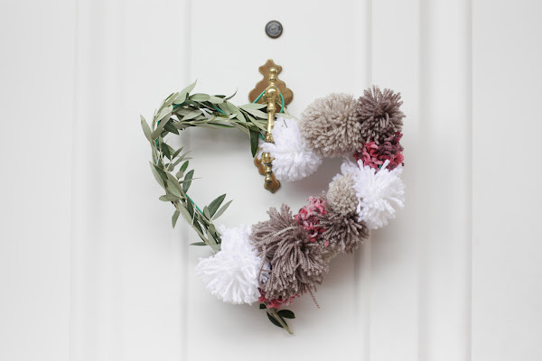 3. Corona de flores: Otro mítico en Navidad, las coronas para las puertas o como centro de mesa. Con una vieja percha de alambre y unos pompones de diferentes colores y tamaños, puedes crear una corona tan espectacular como ésta. O hacer un combinado de pompones y ramas de olivo o eucalipto.