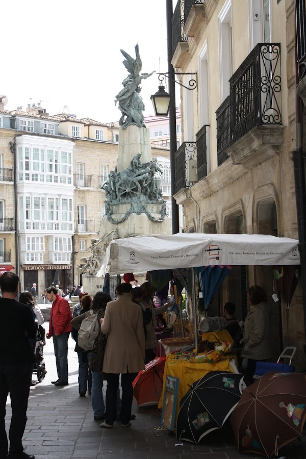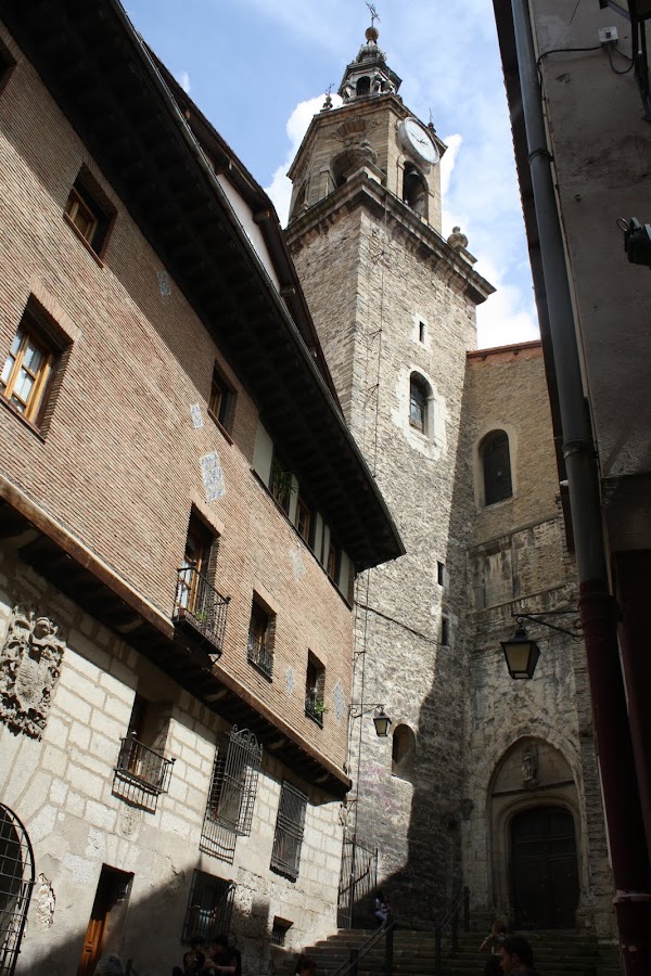 ¡¡Anda que no os he dicho que es¡¡.......La Plaza de las Burullerias, esta parte de Vitoria era una de las entradas desde Castilla, así que en la Edad Media se usaba como mercado..........se vendía la lana de las ovejas, se ponía el precio........Al fondo veis la entrada a la Catedral como veis esta fortificada, se asienta sobre las murallas, se ven todavía los paseos de Ronda........