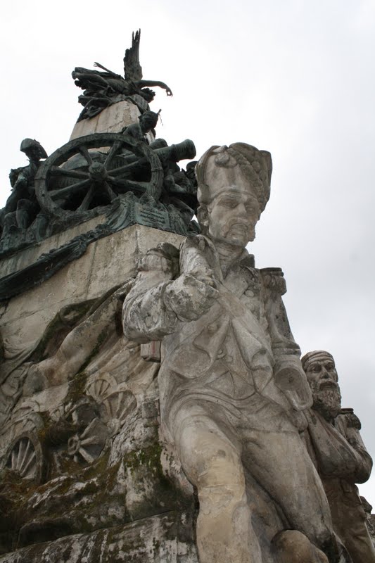 Están ""posando"" delante del monumento a la Batalla de Vitoria