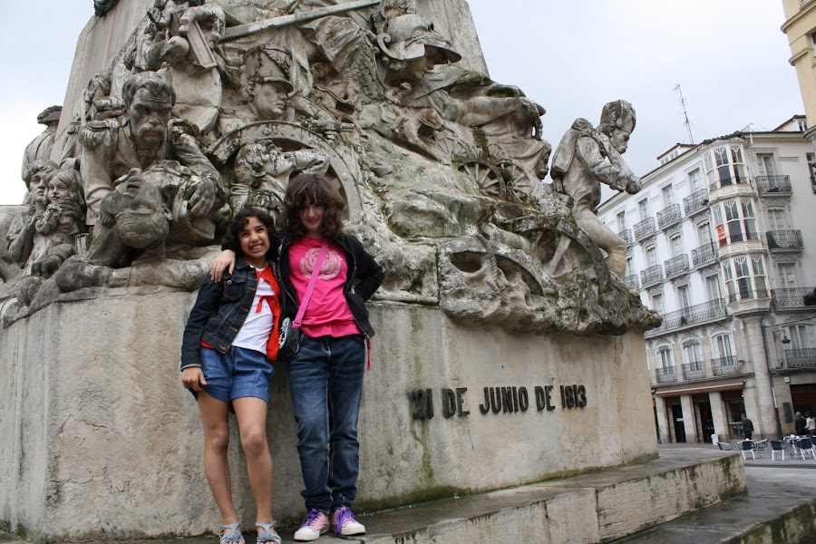 Están ""posando"" delante del monumento a la Batalla de Vitoria