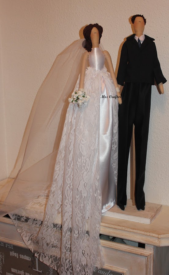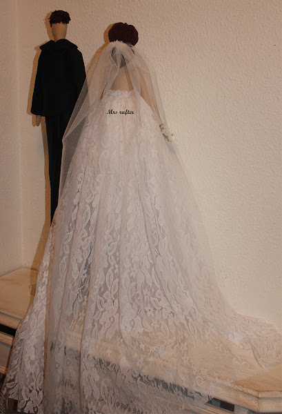 Así quedó la pàreja, colocados en una peana alargada para poder lucir bien la cola del vestido.