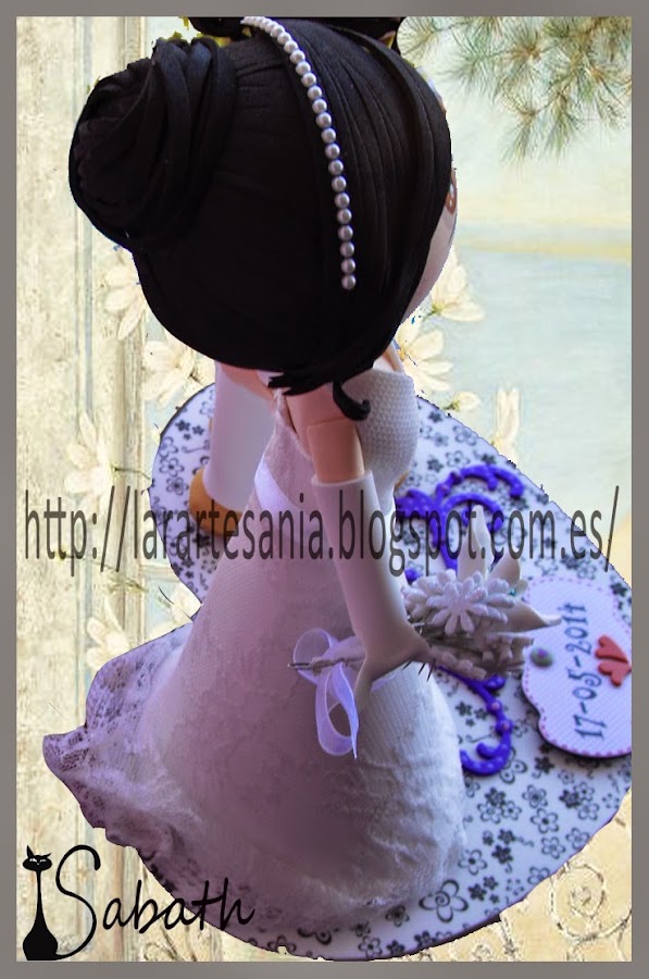Para un día muy especial, una tarjeta muy especial... como regalo para unos futuros esposos, con los mejores deseos de que sean muy felices... y coman perdices!!!!!!!!!! FELICIDADES, SUSANA Y JUAN CARLOS... que disfrutéis de vuestra vida juntos... Es una tarjeta para mostrar de pie, montada en cartulina blanca y rosa con textura. Como adorno una mini blonda blanca y unas flores combinadas en los ...