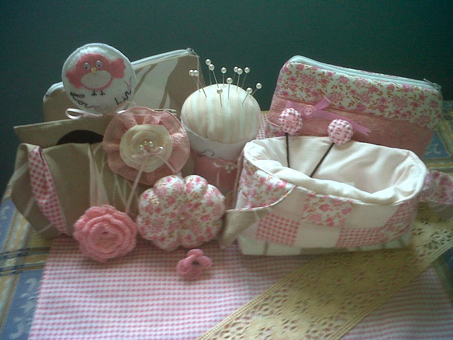 Aquí os dejo una colección de cositas rosas "Vive la Vida Rosa", neceseres, acericos, adornos...de color que ahora es de mis favoritos!
