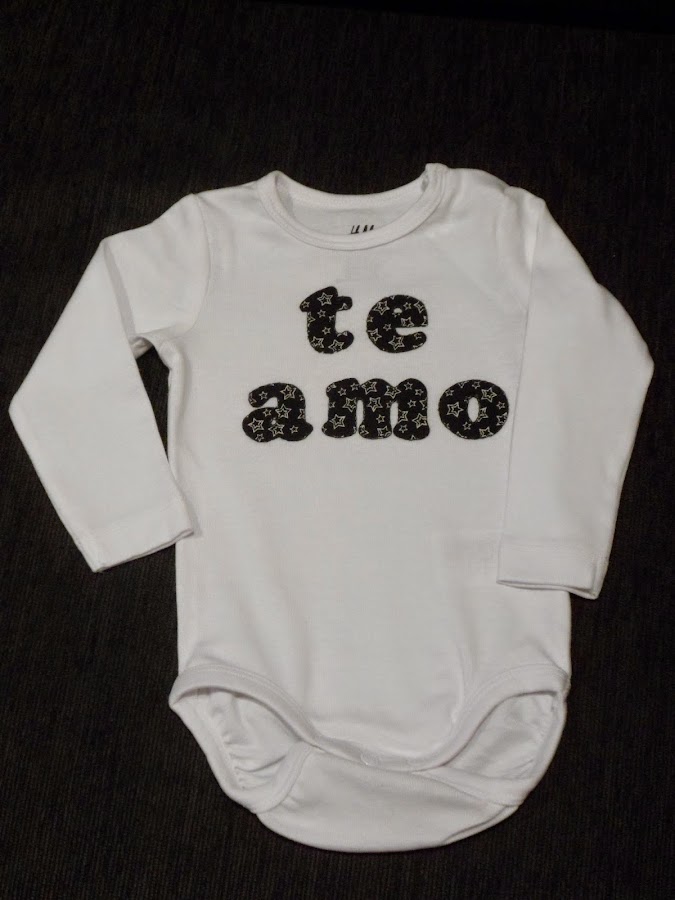 Un body blanco con la palabra te amo.