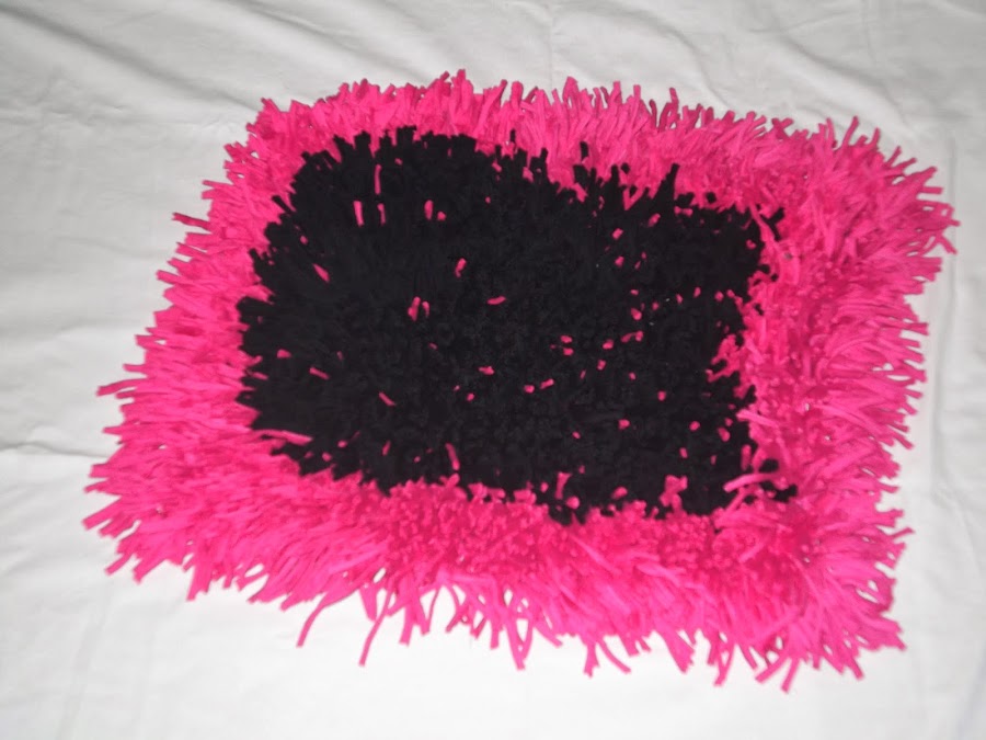Empezamos por una alfombra hecha con trapillo, esta si que me dio bastante trabajo y horas de paciencia.