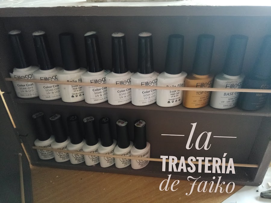 En qué se han convertido? En un maletín para guardar los cachivaches de hacer la manicura. Sí, necesitamos un maletín, por que se ha convertido en algo divertido y que necesita muchas cositas (viciooo!!). Así que se me ocurrió la idea de transformar cada caja en un estante.