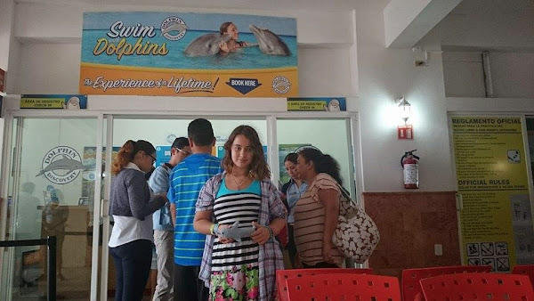 Ariadna, que se iba a nadar entre delfines y se llevó a su pequeño delfín de amigurumi!