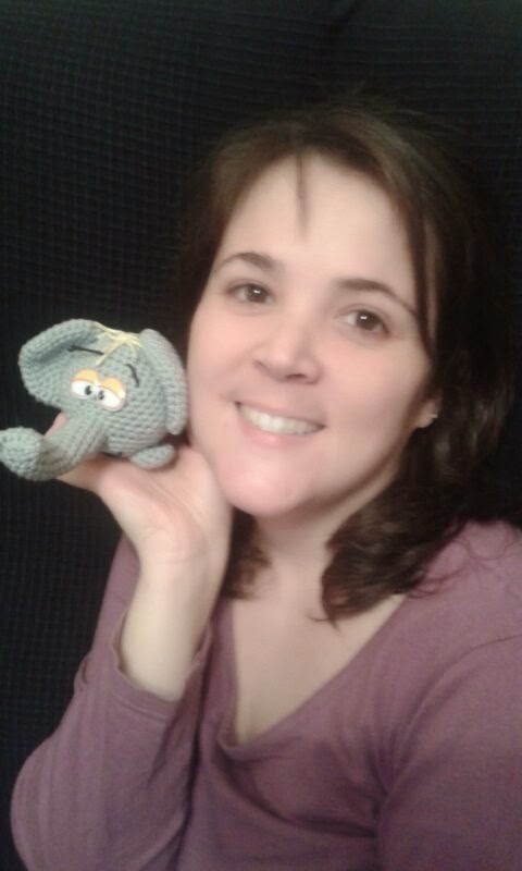 Vane, con el elefantito equilibrista, para su peke Aitor!