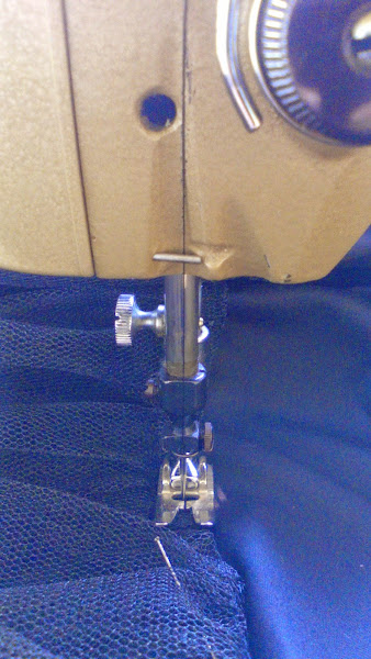 el tul se frunce con el punto mas largo que tenga tu maquina