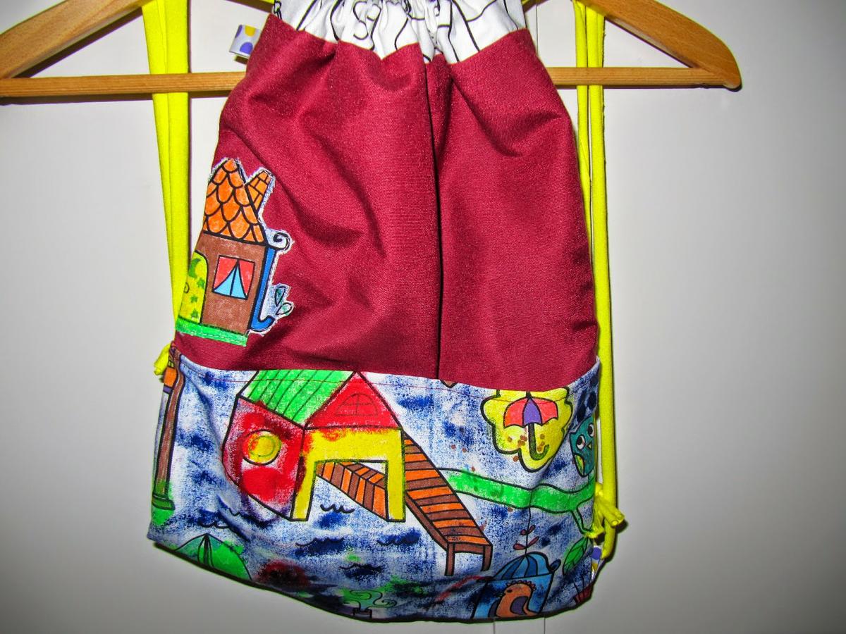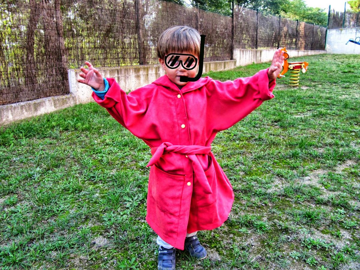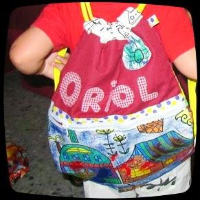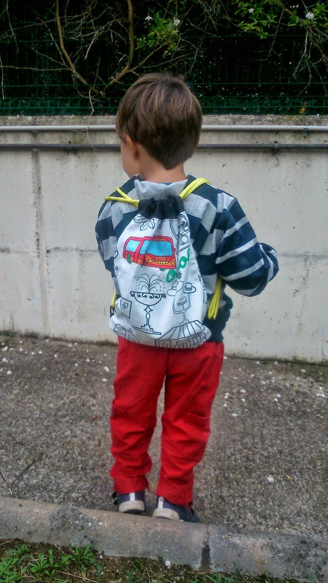 Ya que todo iba a ser nuevo para él, porqué no un poco de familiaridad en sus materiales nuevos? Me propuse que la bata, mochila, bolsa, ... que llevara al colegio fueran hechos por la mama, así estaría cansado de verlos por el sofá, encima de la máquina, por el suelo... jejeje y todo le seria familiar.