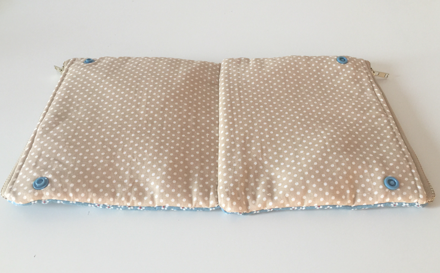 La gracia de este estuche esta en combinar telas exteriores, le da el toque diferente y especial, pero bueno, lo dejo a vuestra elección. Necesitareis cortar 4 trozos de tela exterior, otros 4 de tela de forro y 4 de guata, todos de 20x18 cm. Además dos cremalleras de 20 cm y unos snap.
