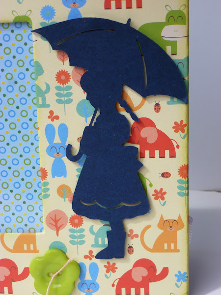 Los bordes están entintados con Distress "Stormy Sky". Y como adornos, tres botones con forma de flor. La silueta de la niña es un archivo cortado con Silhouette Cameo. Esa máquina y yo estamos estableciendo una relación estupenda, que espero que dure y se consolide en el tiempo. Es una herramienta muy útil. Os dejo detalle: