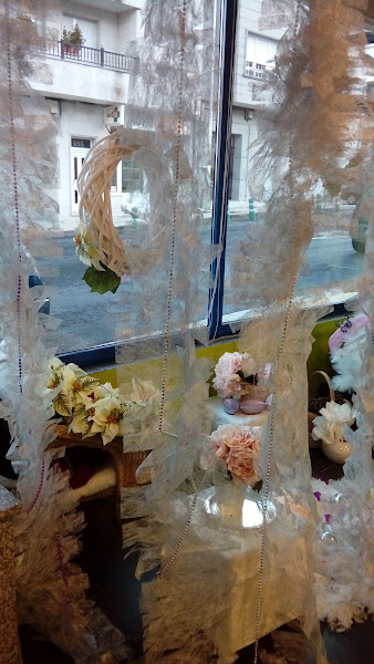 Y aparezco hoy para mostraros el escaparate que hemos preparado en el trabajo entre las chicas, menudo equipo de decoradoras que estamos hechas.....je, je...