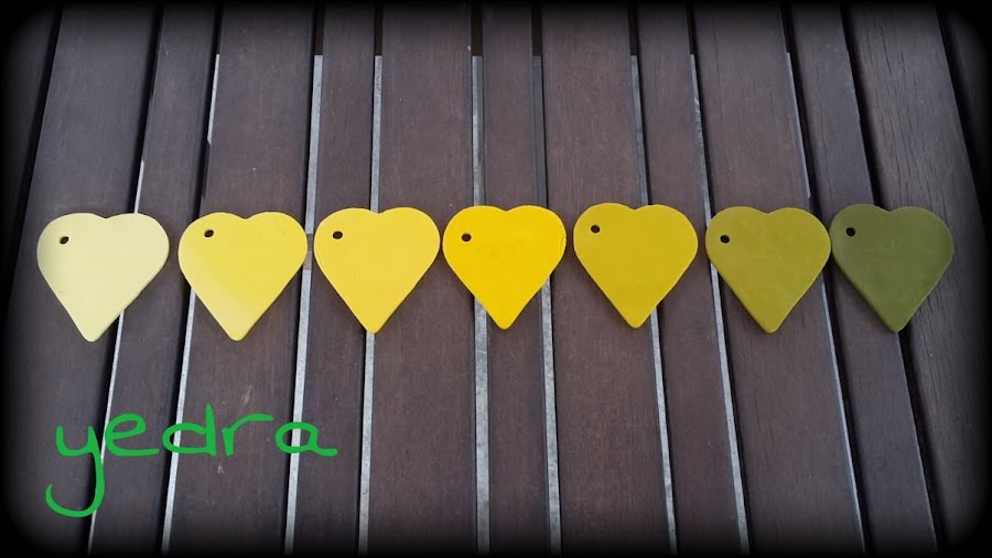Así que cogí la carta de color de Fimo Professional y he empezado con el amarillo. Aquí tenéis el resultado.