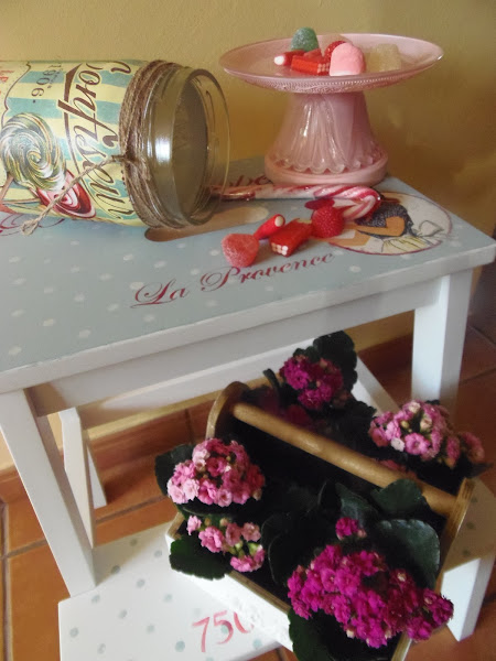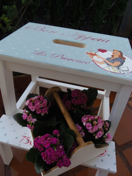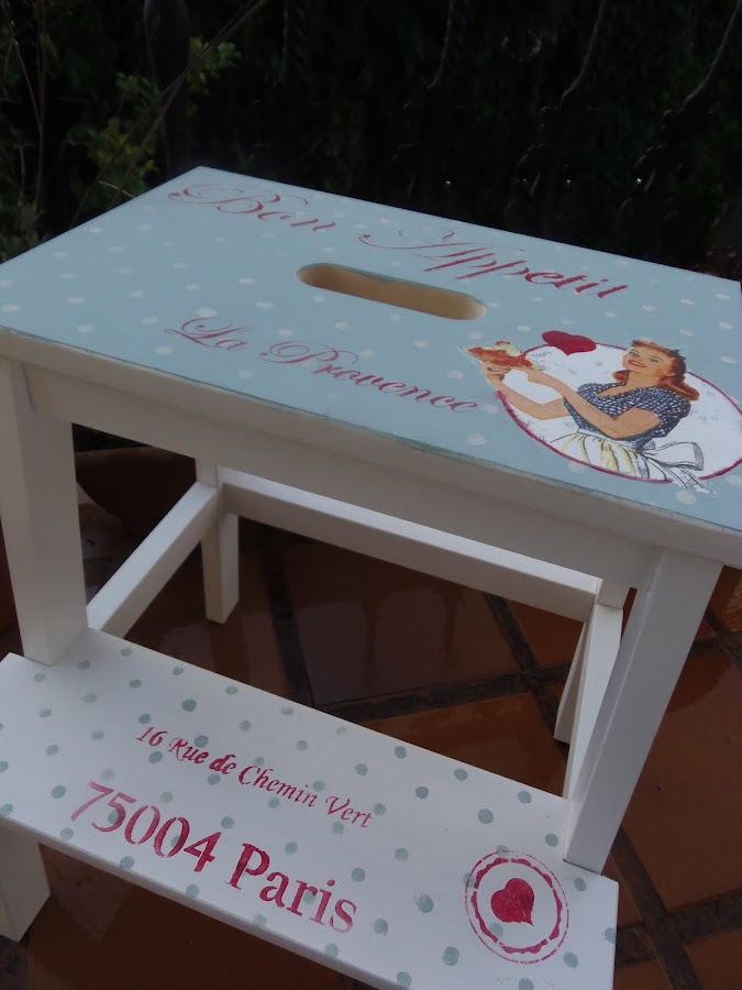 Hace un tiempo tuneé un taburete escalera de la tienda sueca y cuando mi madre lo vio se enamoró jaja,así que tiene nueva dueña.Decidí hacerme otro para mí y es este,otro estilo y con una servilleta que he usado muchas veces y me encanta