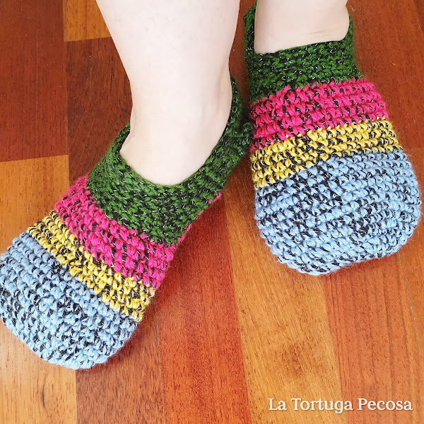Una de las inspiraciones para hacer estos calcetines fue jugar con las texturas y mezclar lanas, la base era el color negro y luego le fuí mezclando, como veis en la foto azul, amarillo, rosa y verde. Creo que queda muy guay y sobretodo cumple su fin: hacer una estancia más agradable en casa.