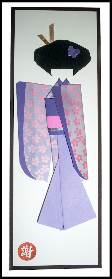 Así que decidimos hacer un intercambio, le mandé los sellos junto con esta washi ningyou montada en marcapáginas personalizado (no puedo enseñaros el reverso porque se me olvidó sacarle la foto)