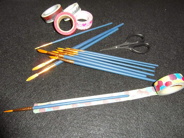 Cualquier cosa es susceptible de ser tuneada con washi y yo no me he podido resistir a decorar unos pinceles bastante sosos.