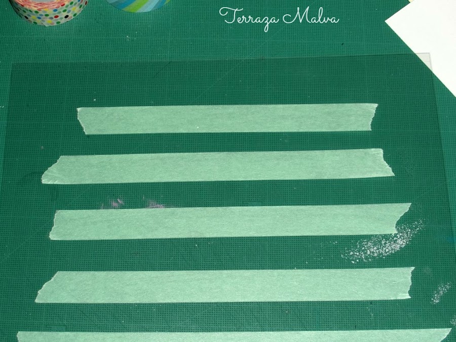 Las tiras de Washi pueden dejarse sobre el acetato hasta que se vayan a utilizar. Si no tenéis acetato podéis situar el Washi directamente sobre la hoja impresa, sin apretar mucho para que después se despegue fácilmente.