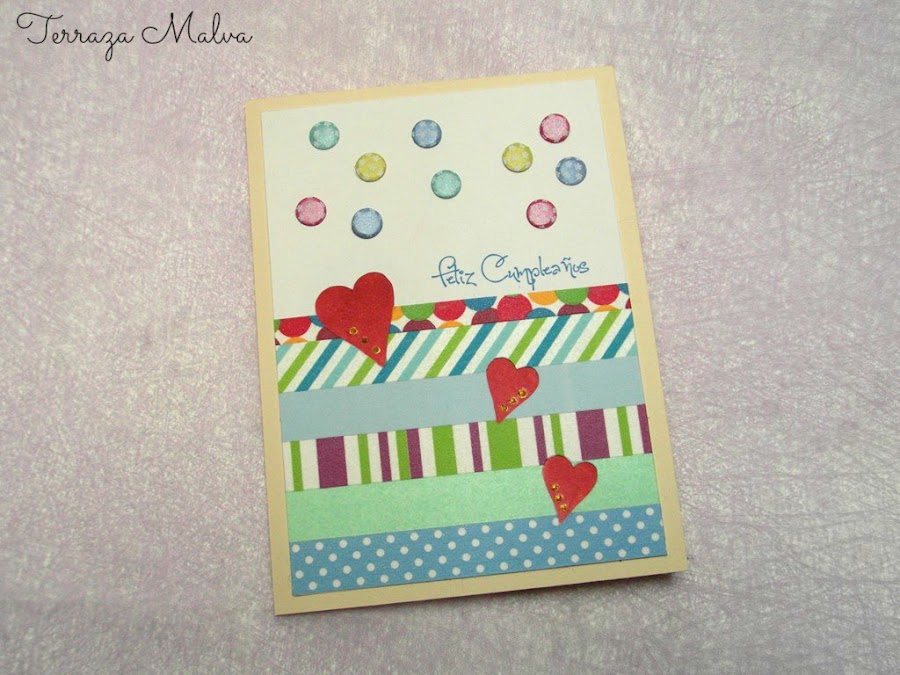 En ambos he utilizado las mismas cintas washi aunque colocadas de diferente manera. También comparten los corazones troquelados y falsos brads de papel.